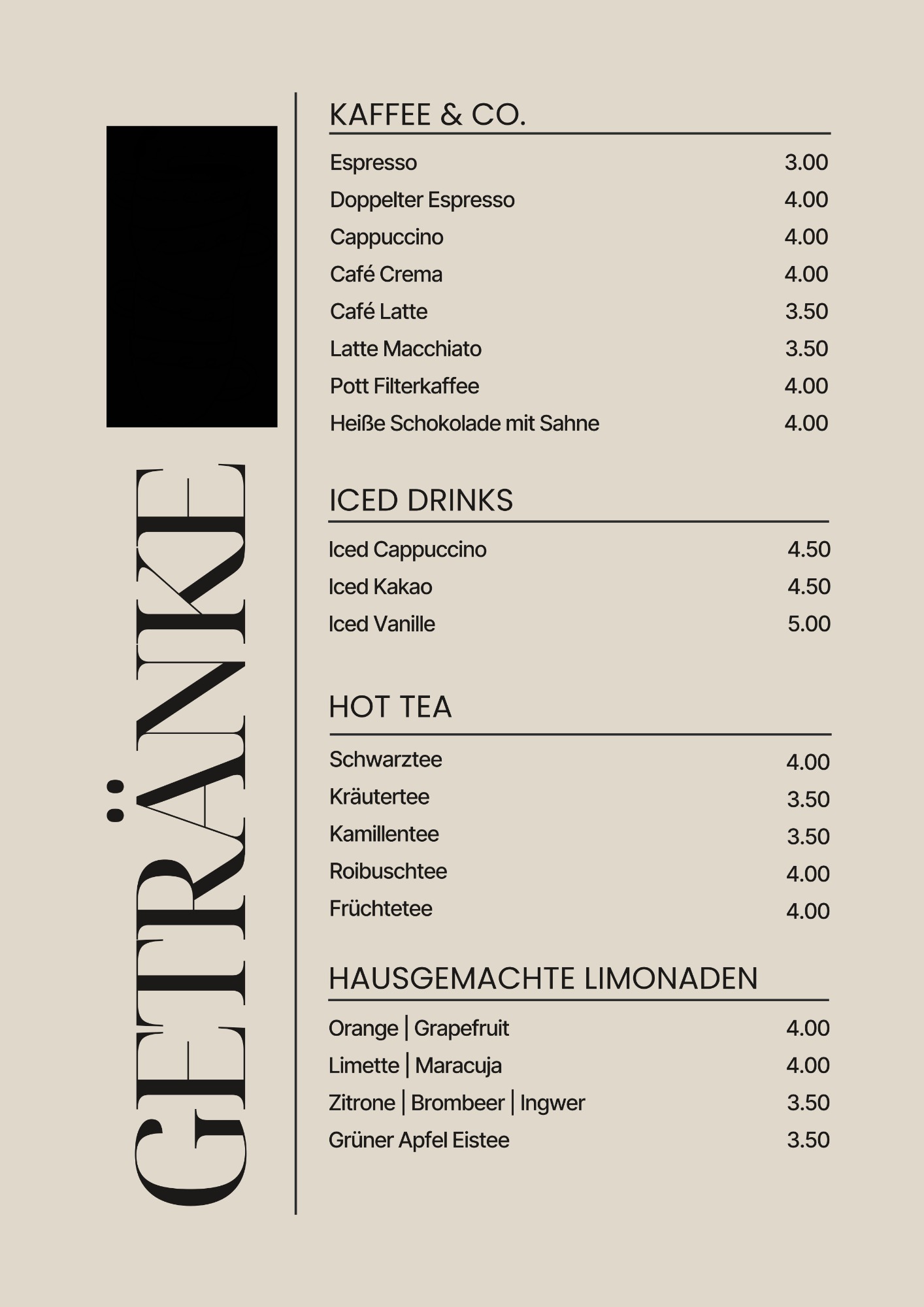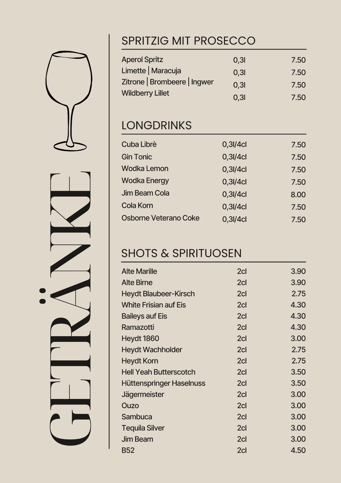 Getränkekarte